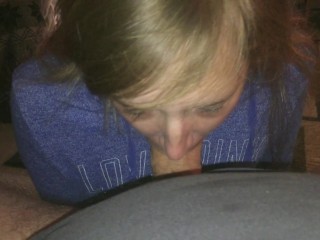 Milf almost gets caught sucking my cock by her mom right as I cum POV. Still swallows it